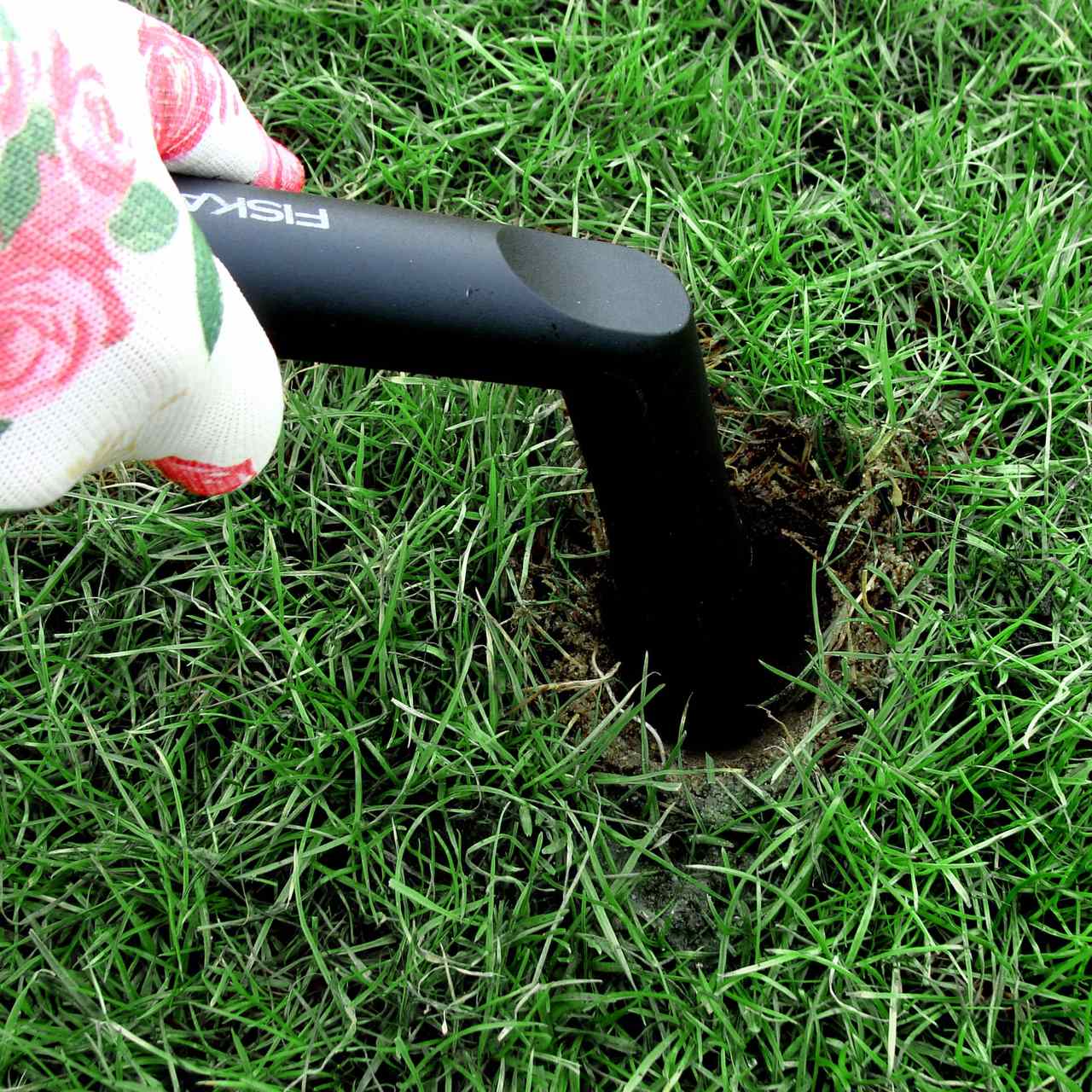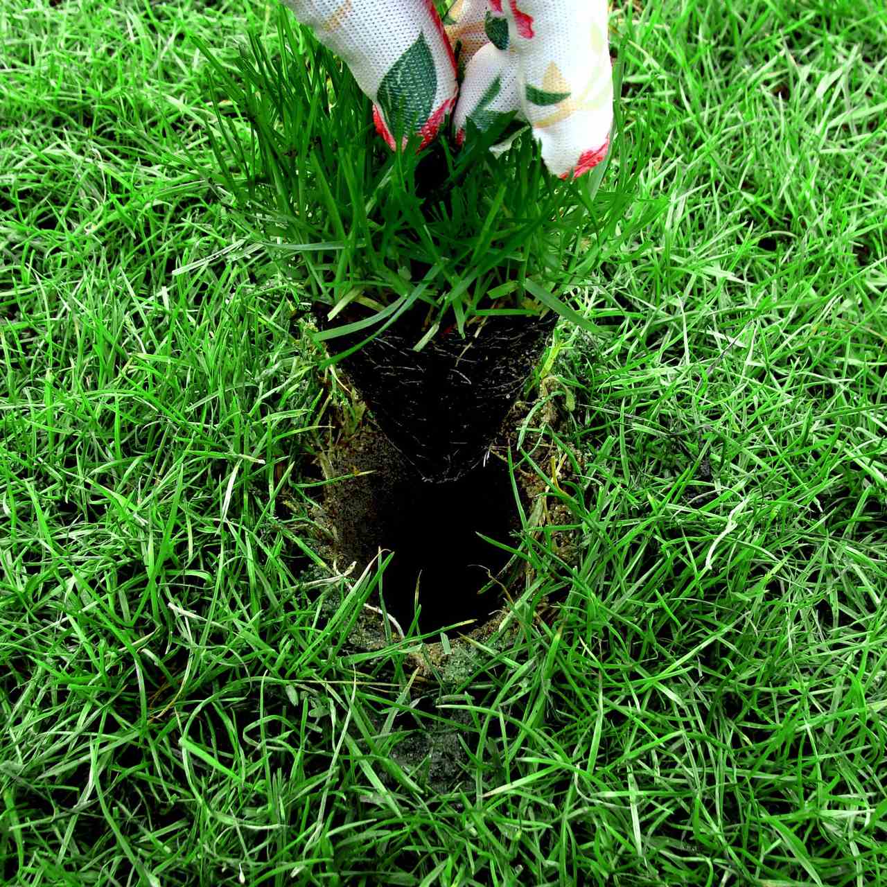 naprawia dosłownie w kilka chwil uszkodzenia trawnika spowodowane przez zbyt intensywną eksploatację, krety, zwierzęta domowe i samochody.